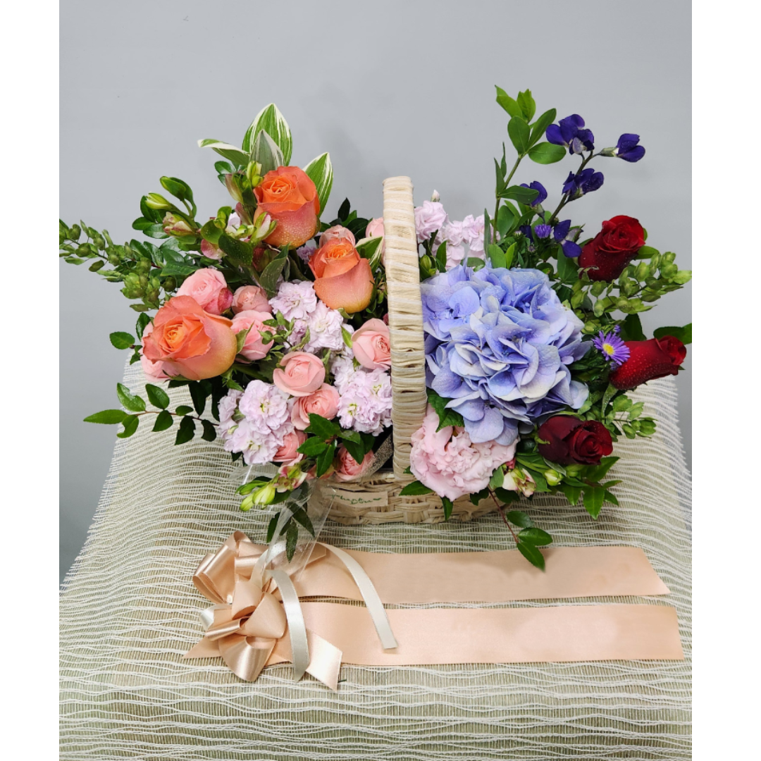 정열적인 빨간장미와 순수한 백장미의 조화가 돋보이는 아름다운 꽃바구니입니다.