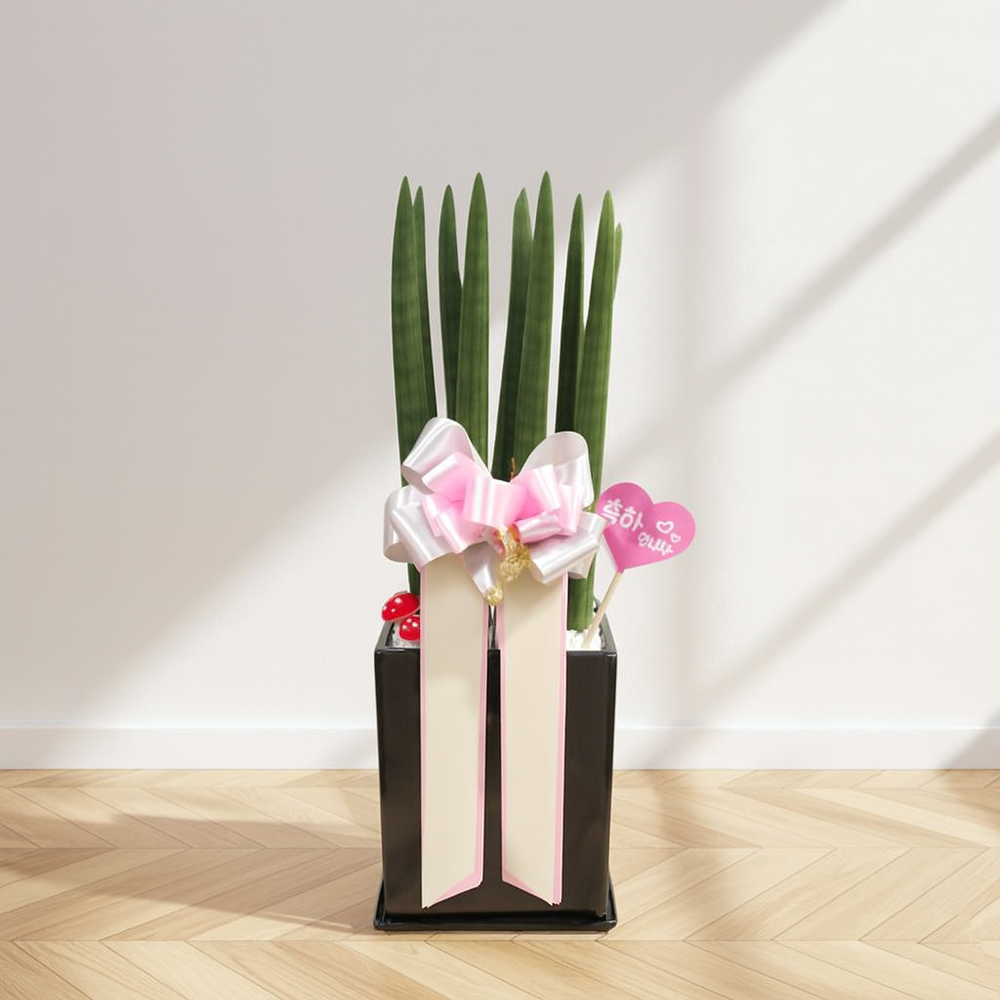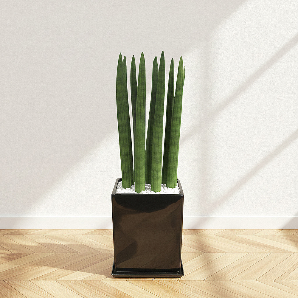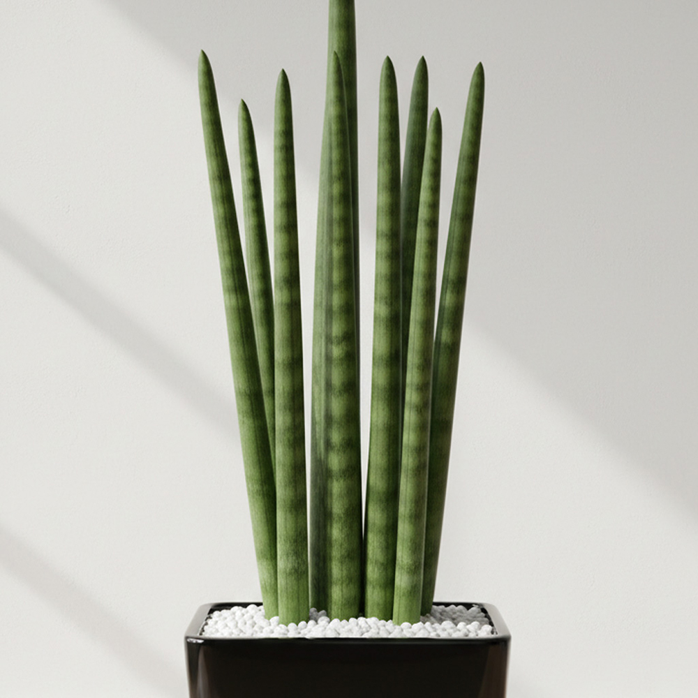 특징 : 산세베리아 종류의 스투키 다육식물로 전자파를 차단하고 음이온을 방출하는등 공기정화식물로 아주 좋습니다 밤에는 이산화탄소를 흡수하고 산소를 발생시키므로 방에 두고자면 좋다고 합니다.