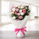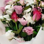 화사한 파스텔톤 느낌을 강조한 싱그러운 아침향기의 내음이 전해지는 혼합꽃다발 입니다.