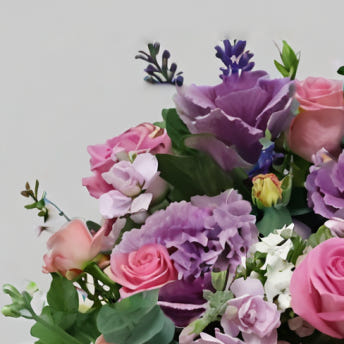 생화의 특성상 계절별,지역별로 보라빛장미소재를 구하기 힘들 시엔, 비슷한 느낌의 파스텔톤장미로 꾸며드립니다.