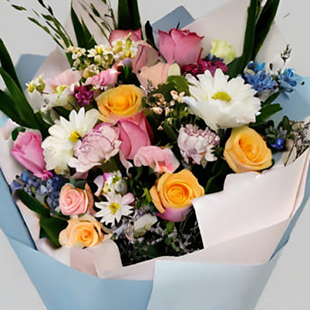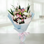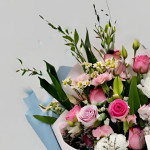 화려한 포장을 하지 않고 장미 30~50송이를 가지런히 포장한 다음 끈으로 묶습니다.