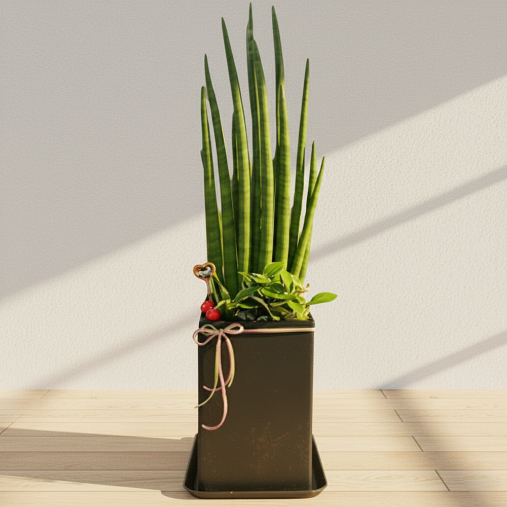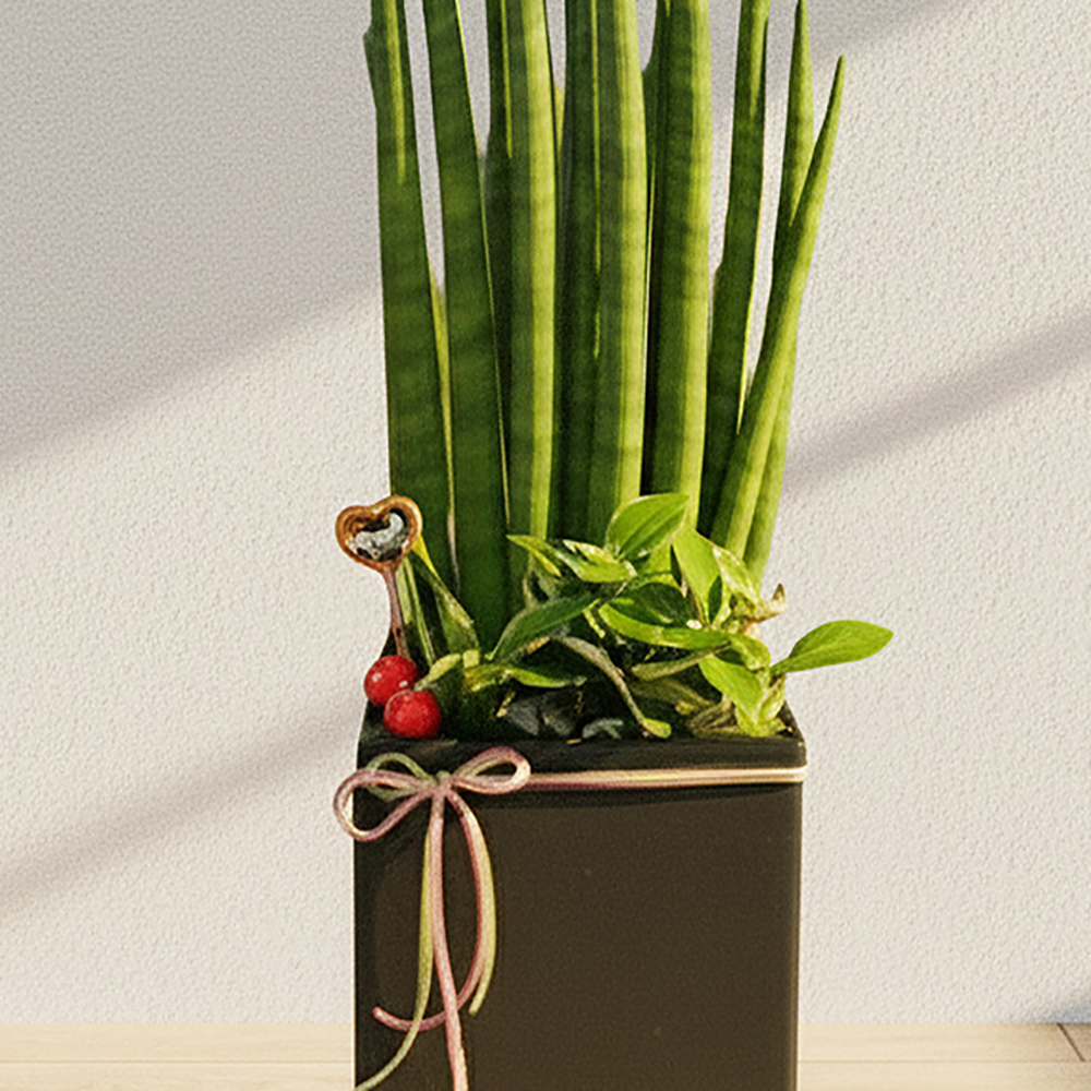 특징 : 산세베리아 종류의 스투키 다육식물로 전자파를 차단하고 음이온을 방출하는등 공기정화식물 입니다. 밤에는 이산화탄소를 흡수하고 산소를 발생시키므로 방에 두고자면 좋다고 합니다.